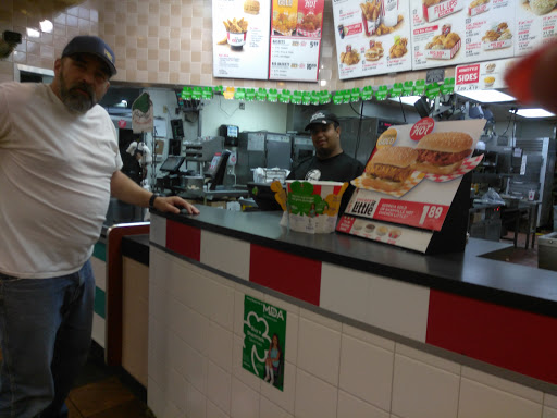 Filthy and bad service. We didnt notice until after we had ordered that the place was disgusting. When we got our cups we proceeded to the drink counter and there was soda spilled all over the counter and the floor. Our shoes stuck to the floor. There was trash everywhere and overflowing out of the trash can. It was gross. When we received our order, I was missing sauce for mine and my husband had been given a completely different item then he requested. He asked for a zinger box and they gave him one of the $5 meals instead. The staff was arguing constantly about who should be doing what task and they werent even busy. They were swearing across the kitchen at each other and then just standing around chatting if they had no customers placing orders. It was our first time there and it will most definitely be our last. Would not recommend.