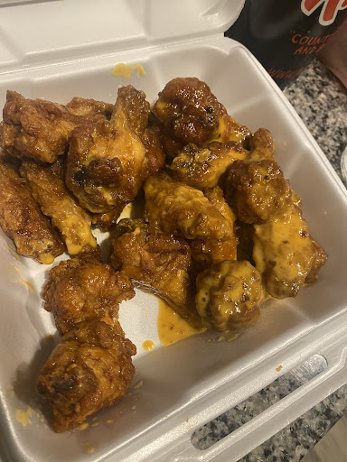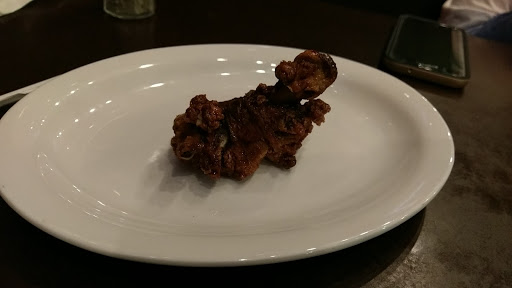I have just one complaint here... The Native Puffs appetizer was the 2nd worst app I ever had. A trail of sludge on the serving platter was very noticeable, as I slid the puff over to my dish. But I didnt find any BP slush fund here to compensate my queasy stomach. And the filling was comprised of nasty canned processed cheese. The manager said he would give these to us at happy hour pricing, but that promise didnt make it to the check. Now on to the good stuff. Their pizza rocked! The crust was perfectly crisp, the sauce was seasoned to my taste, and the toppings were spot on. Their wings were deep fried perfectly. I just love the honey-hot flavor. Our server was very attentive (and his station was slammed), and the manager (and some other friendly employee) came over to check on us, telling us about an upcoming free wing special. Even when one of the other servers bumped my arm as he walked by, he made a point to get my attention to apologize. (Results not typical) They have $3.00 22oz domestic tap for happy hour. Boo Native Puffs. Hooray Beer!