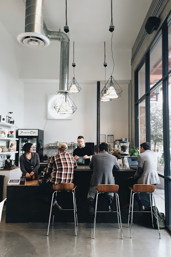 A cute, small, hipster coffee shop with ties to the salon in the same building. Although there is limited seating, they do offer free wi-fi, and a unique menu of coffee. I wouldnt recommend coming here if you want to get a lot of serious studying done, since there isnt much space, but it is a great place for you to come for a coffee date or meet up with a friend to catch up over drinks. Not only do they serve coffee and teas, but they also offer some unique alcohol options. I ordered the honey lavender latte, which came with fresh petals. It was too sweet, and had a hint of lavender that was subtle. It is a very clean, minimal set up with a cute area where you can sit up by the coffee bar. Theres one couch where customers can sit to chat or wait for their hair appointment.It is a minimalist vibe that has great service and great coffee.