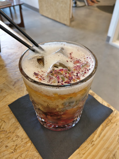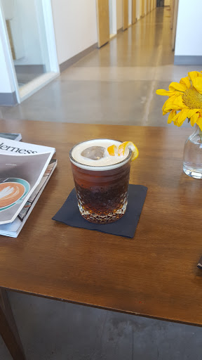 Interesting space for a coffee shop, cool vibe that isnt typical - its in the front of a salon. I had the cold brew, black (my go-to for quick caffeine). Maybe its because I wasnt expecting it, but I was horrified when I took a sip and found that it was carbonated. Not pleasant. I like nitro cold brew but this wasnt normal and I grimaced every time I took a drink. Im curious about the coffee cocktails though so Ill probably come back.