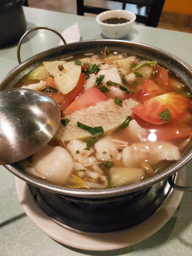 I had chicken rice soup that seemed overly thick, with a rather dulled flavor. I also had chicken w/spicy lemon grass sauce and found it moderately hot (I had asked for mild) and much more heat than flavor. i did like that the vegetables and meats tasted fresh. We thought the prices were fair enough: $20.00 for the three items. And there was plenty. Perhaps ordering different items may change out minds however, not planning on a return trip for now.