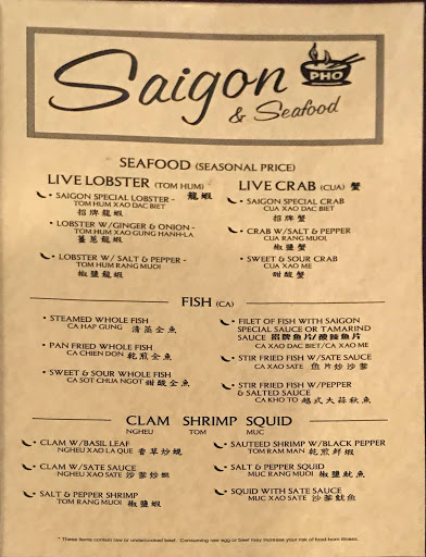 Saigon phõ is one of those places where the food and customer service is so good all the time that you end up eating there all the time because you just cant beat it. My favorites are #41(shrimp crunchy noodle) #45 (Chinese broccoli) #50 (pan fried beef) You cannot go to pho without ordering their crispy eggrolls. Their eggrolls are the best Ive ever had. Their salt n pepper squid is always bangin. Their sauté squid or sauté clams, just so good. My favorite soup is #14 (chicken broth soup) but I also enjoy #20 (seafood soup). Go here, eat here, its amazing.