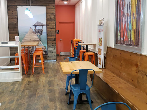 The service was slow and the guy wore the same pair of gloves at the cash register and making our food/slushes. My blimey limey did not taste limey at all and I even had them make me another one.