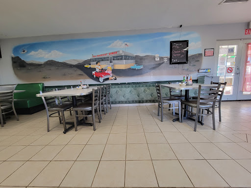 Cute little 50s inspired Diner. Next door is a retro motor lodge. My Patty Melt was on point! Only curious thing was there was no music? Ive been to places like this before and they usually have 50s music playing, sometimes an old jukebox. No music???