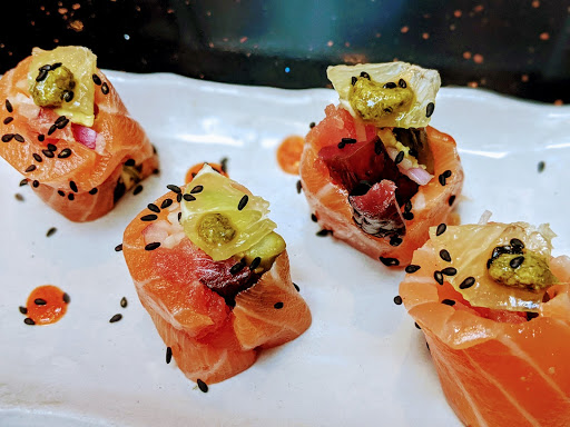 Dropped by this place one the way home to Orange County, Ca from Lower Antelope Pass. It had a nice ambiance and service was good. I got the Summer Roll which was on Happy hour. It had cucumber and avocado along with Tuna. It was sub par. Rice tasted uncooked and pretty dry. Not as glutenous as other places. Didnt really taste like Japanese sushi rice. Tuna within the sushi roll itself was minimal as well. All I tasted was cucumber and avocado. Secondly I had a salmon bowl. Which was cooked salmon steak drizzled in teriyaki sauce. It was decent and good portions so that made up for the Summer Roll. What took the cake was the New fashion cocktail. Just the right amount of whiskey, bitters, figgy pudding and muddled fresh blackberry. Definitely refreshing and satisfying at the same time.