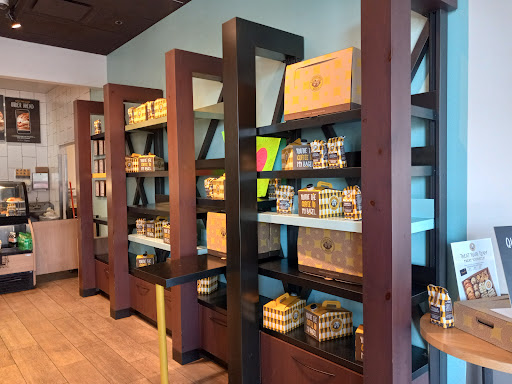 If you are going to eat here...go early. The quality is good (its Einsteins Bagels & Carinou Coffee), but the location is not well run. Today marks the third time I have been here in mid afternoon and they are out of food to serve. Today it was more than 90% of their bagels + potato salad + fruit salad. This location is open until 5PM...which is still three hours away. Thats not how you run a restaurant. The staff are friendly and keep the dining area clean. Prepared to be disappointed by the lack of selection if you stop by after 12PM. Hopefully, they can figure out how to prep for the full business day. Once they do it will be a good spot for breakfast, lunch and early dinners.