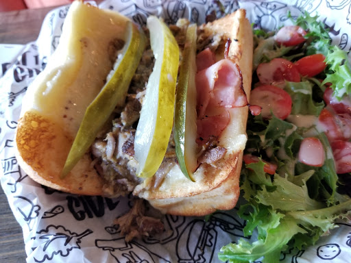 Have stopped in twice and both times the experience was great. Service was exceptional and food was delicious. We ordered the "Do guda" w/salad. They also have a great selection of craft beers. The decor is eclectic and reminds me of a coffee shop vibe. Kids loved hanging on the couches while playing the provided board games. We also love the fact they partnered with non profits to donate a sandwich for every one you buy. As my son says "I give it a fumbs up!"