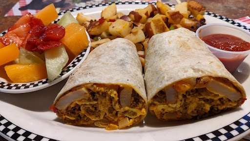 Its been less than two months since we found this wonderful diner and I think my sister and I have been there 5 times. Each time has been awesome! Patti was our waitress for yesterdays visit. Even after four visits, there are so many tantalizing items on the menu, I still couldnt figure out what I had wanted - except for one item-- the sweet cream pancakes. Sweet cream pancakes with what? "Do I just get a short stack" and save room for their cobblers , bread pudding, a gigantic bearclaw ( no kidding) but darn those omelettes, They have a good portion of breakfast choices on the menu Their menu is not lacking in homecooking. They have breakfast all day, lunch, and dinner after 4pm (dont quote me on it though) just call them. By the way, their dessert menu -there are still a couple of items I didnt mention. Back to Patti-she helped narrow down my choices. I ordered a small volcano: 3 smaller sized sweet cream pancakes; 1 sausage (no tiny link sausage here, it was thicker link hat many served at other restaurants); 1 slice of bacon -crisped to perfection; 1 egg overhard. Thank goodness, I ordered a small volcano- couldnt even finish my pancakes- I had to save room for dessert. My sisters. She ordered the cherry cobbler a la mode-- cherries had enough sweetness and tartness, Vanilla bean ice cream on top with some whipped cream. Really, you cant go wrong with this cobbler. So I helped her finish her cobbler (no tiny portion here). Patti was the best!! She even let us know what coupons are out there on the internet for the next time we come in. She asked if we had a frequent diner card. For a small nominal fee of $5-, your next visit has a preloaded $10 discount. Dont worry, if you dont spend the full amount on that visit, the balance is transferable (how great is that!!). So besides the discount, you will continue to rack diner points when you use this card. Every 100 points you will get an automatic $10 discount.on your next meal (dont forget to bring your card to the diner, of course) So thanks again to Patti & the crew at Black Bear Diner for great food and spectacular service. Oh before I forget-- Tyler-- at the register. Excellent customer service!! Thank you also for going in search of the frequent diner card for us.