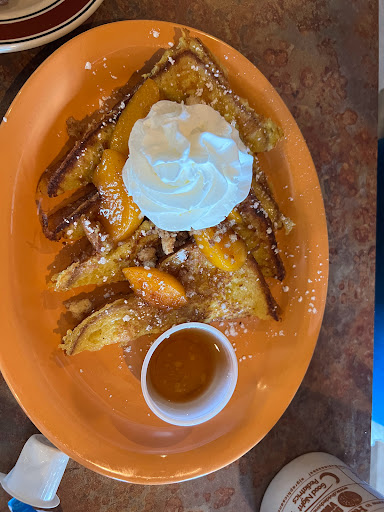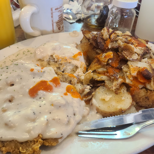 Love this place! It is wonderful to have a non chain restaurant in the area. Always friendly and fun. Our servers have consistently been attentive without hovering and make every effort to ensure the food is to our liking. The menu has something for everyone. The servings are large enough to satisfy a big eater. I always leave with a to go box. The chicken fried chicken is delicious. You can have it with biscuit and gravy for an over the top, I want a nap, plate of yum. The peach iced tea is perfectly refreshing. I suggest you go online to the menu and narrow down your choices before you go. So many choices! The only downside I have experienced here is due to lazy parents. During the busy weekend times I have seen small kids roaming around as they please, approaching tables and causing servers who are trying to do their job to also have to act as babysitters. Very dangerous to let little ones run around. I avoid this by going on non peak times and enjoy the great food and friendly people. Also the owners are so nice and have a son serving in the military. Oh and prices are reasonable for the quality and portions. Hope you like it!