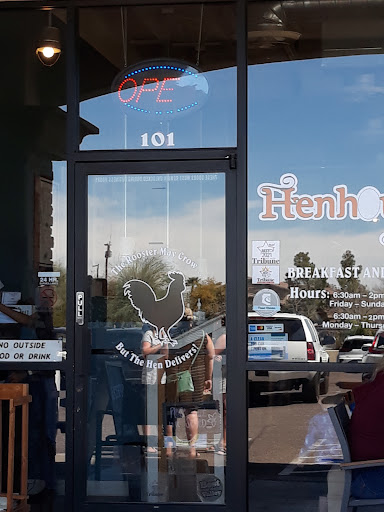 Were from outside the Phoenix area, and have eaten at the Hen House a few times when we come to town. The food is decent (not great) but priced fairly, and the coffee is OK (not great). Still, we found the service to be cheerful and good, and overall its been a good experience. Until this last time. Incredibly, during this last visit on Jan 8th, the owner was wearing a gun strapped to his waist while serving food in the dining room. We know that Arizona is an "open carry" state, which we find sad and ridiculous, and certainly so in a family restaurant. I cant help wondering if everyone would be so relaxed about it if someone of color walked into the Hen House packing heat. We didnt notice this absurd situation until we had just finished eating and had paid the bill. Had we seen it earlier, or had a customer walked in carrying a gun, we would have left immediately and without paying. Talk about a buzz kill...a killing machine strapped to the waist of a waiter in a family restaurant boggles the mind. In what parallel universe is this appropriate, needed or justified? This experience leaves an indelible mark. We look at this restaurant, indeed all of Arizona, in a whole new way, and it aint good.