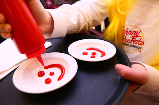 My husband and I were at Johnny Rockets this weekend before catching a movie. We had 50 minutes so we didn’t want to go very far for our meal and risk missing the beginning of our movie. Johnny Rockets was pretty empty at about 8:40 pm so we though this would be perfect. We sat down and were told our server would be right with us. That did not happen. While it was not too long that we waited, we really shouldn’t have waited as long as we did considering how few customers were there. We noticed there was several staff standing around while we were looking and trying to figure out who our server was. The girl that brought our menus noticed us looking for our server so she came over and asked us our drink order. She said she would get it started until our server got to us. We said we were ready to order. She politely took our order and we continued to wait. Finally our server came over and did the ketchup on the plate thing. Again, waiting some more, finally our burgers came out, “barely warm”. Of course the jalapenos were missing from my order as usual, but since we were in a rush and I was several bites into my burger and didn’t see our server anywhere, it was too late to even bother asking for them. I sat there and told my husband that I know what’s wrong with this establishment. There is no adult supervision. This is an all around kids hang out. A different server had a friend “hanging out” waiting for him in the booth behind us. I believe if you hire an adult manager to watch over the kids the sales would increase dramatically. It has nothing to do with pricey fries with or without the burger. That is nonsense. I will continue to go to Red Robins in the same shopping mall for an awesome “hot” burger and fantastic customer service. I’m done with the crappie kids service. Johnny Rockets is slowly going down and I predict will soon close down. By the way, we got out on time because we swallowed our burgers and took both our fries and Milk shake to go! Absolutely terrible service!