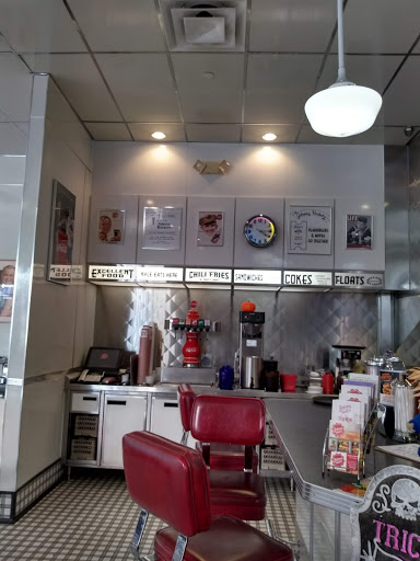 It tries to replicate the burger shops of the 50s and 60s and does a decent job. Burgers and shakes are pretty good. Convenient to Harkins Theater.