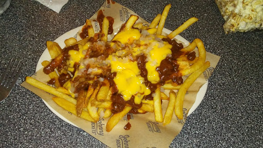 Music is too loud. Atmosphere is impersonal. Our waitress was OK, nothing special. My burger tasted decent but wasnt what I ordered! My wifes Swiss/mushroom was terribly greasy. Fries are OK, but good luck with the unlimites as you cant get Service quick enough to get a Second portion. Shakes are great and serve as an app and a desert! Wont be going back.