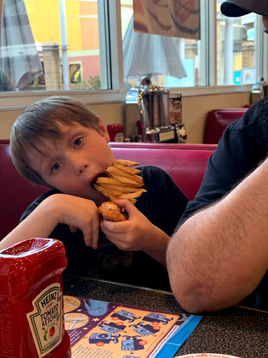 Decent food, prices and yummy shakes! We like the ketchup smiley faces and the singing /dancing that the servers do. I usually come with my young kids. :)