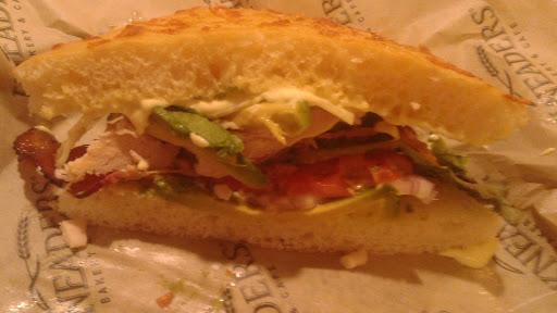 Had dirt all over the lettuce of my turkey, avacodo and bacon sandwich.. that then turned to mud and spread over the whole sandwich...GROSS!!!!. My other sandwich turkey, avocado, bacon had no bacon... WOW missed 1 of 3 main ingredients..... No manager on duty, no offer for a refund simply said sorry and then made another sandwich dirt free with half the amount of ingredients. Still no bacon... spend 38 dollars on 2 terrible sandwiches, 2 drinks and 2 deserts... ATROCIOUS....