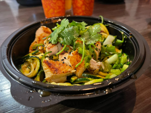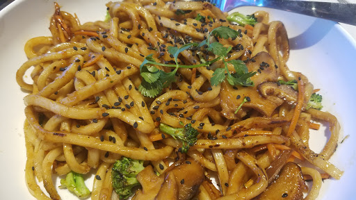 Place is nicely designed. Operation and workflow seem streamlined and thoughtful. E.g. take-out are provided with nicely branded tote bag. Condiments and utensils are better grade and abundant. Place is clean. Dishes are good although improvement can be had. E g. Alfredo montamore is a bit dry lacking sauce. Noodles in the Bangkok curry were overcooked and a bit too much in quantity. We also had the meatballs and potstickers. Potstickers were very dense and heavy and the bbq sauce on the meatballs were overly sweet. Overall, experience was so so. Flavor was not bad. Would most likely come back and try other dishes.
