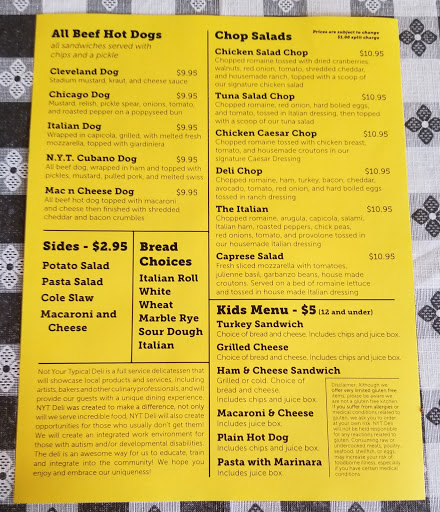 We visited Not Your Typical Deli this past Thursday after reading its awesome reviews on Yelp. It’s the kind of place that you try for the concept, but you’ll definitely come back for the food! Chef W and Chef Vanessa Luna have approached a perplexing issue with compassion and brilliance. Through the creation of a local restaurant they are providing an educational work environment for folks who might normally find career opportunities limited. At least 50% of the employees at Not Your Typical Deli have Autism. Find a link to their About page here. nytd interiorBut this is not merely a showcase for the owner’s kindheartedness, it’s a real business with a real future. The service, the atmosphere and the food are all superb! There’s a greeter, Sam, at the door to welcome you with menus and an awesome smile. Orders are taken at the register by Cordell, with friendly efficiency (and we love the bow tie by the way). Drinks are in your hand almost before you ask. And the Country/Industrial (is that a thing?) atmosphere is at the same time soothing and unconventional. The tag line at Not Your Typical Deli is: Creating DELICIOUS sandwiches that blend rare ingredients to nourish the soul. And in time-honored Yoda vernacular we say “creative they are, delicious it is, and nourish the soul they do!” We left a Yelp review of our own but this place deserves more because it is more. Maybe we’re being selfish but Not Your Typical Deli just made us feel good… and that’s truly the kind of place that you want to go back to over and over again. A sincere Thank You Thursday Saturday to Chefs W and Luna for your feel-good concept and your just-plain-good hometown eatery.