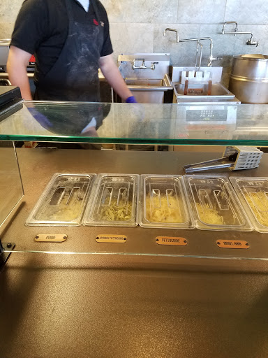 The only reason why I gave this place 2 stars is because the food was good and it was a nice place. However the customer service is AWFUL. When we walked in, no one was there to greet us, waited at least a minute for a kitchen person to ring us up. He didnt take off his kitchen gloves while working the resister, and he didnt not change his gloves when he went back to working in the kitchen. While ringing us up, we asked a couple questions, in which he didnt know any answers. While eating, we noticed other customers enter and we overheard the same worker complaining about having to ring up more guests and that he didnt want to. Another customer complained to some chick who was stirring sauces that whoever cuts the pizza clearly doesnt know how to do it because it sucked. You can barely tear off a piece without touching all the other pieces. More customers walked in and had to wait over 2 minutes before someone took their order (I timed it). I do not recommend this place to anyone because customer service was absolutely awful. Just a bunch of teenagers who didnt want to be there or slightly care about cleanliness and customer service.