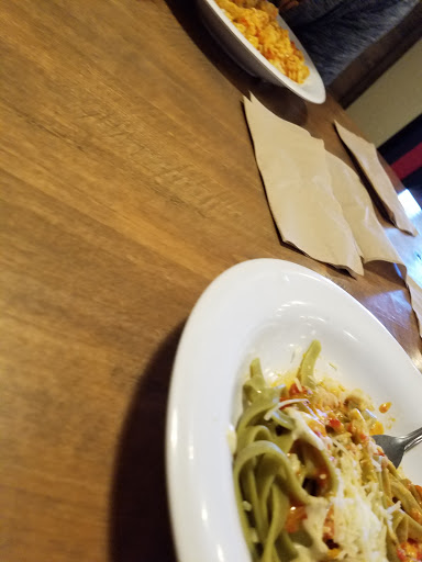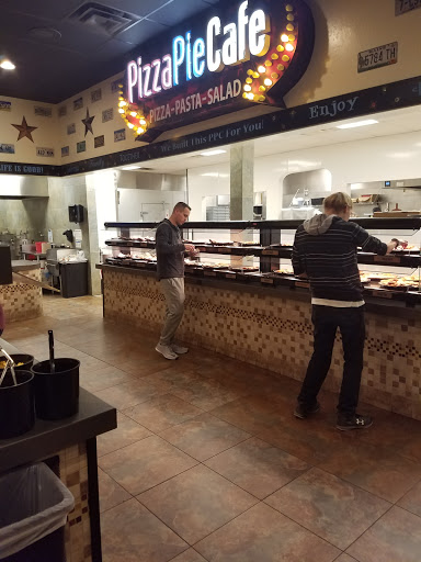 Pizza Pie Cafe is a pizza, pasta and salad buffet. It has has about 10 choices of pizza out to chose from at any one time, not including their delicious dessert pizzas. Choose from about 4 -5 different pastas, and they will immediately cook that pasta for you, hand it to you hot and you then choose your sauces and cheeses if desired. The salad bar has the usual lettuce, romaine, iceberg and toppings. Black olives, croutons, cheese, sunflower seeds, etc. Dressings. The dessert pizzas I think are unique to Pizza Pie Cafe, the Cookie Dough pizza seems pretty popular and is always running out and being refilled. The great thing about this place is if you sign up for their texts, you get plenty of great text offers via text message. Also, a discount price one hour before they close every night if you like to eat late! Great idea on their part. Owned by Mormons so this place is NOT open on Sunday! Bring the family and enjoy a night out.