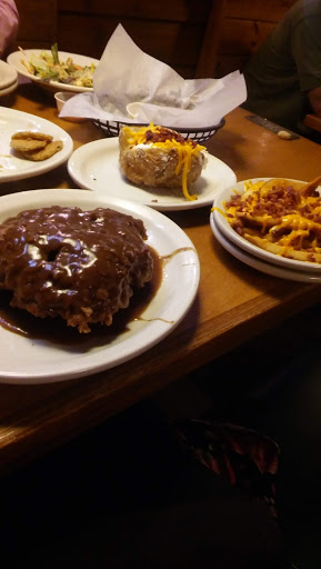 Service was wonderful my meal the country fried steak was delicious but my wifes steak the 10oz Fort worth rib eye was half fat and the fact that the kitchen manager said that thats the chance you take when you order a steak blew my mind. The fact that they would stand behind such a bad piece of meat being a "steak house" is hilarious I will no longer be going to this location and will not be recommending this store to anyone.