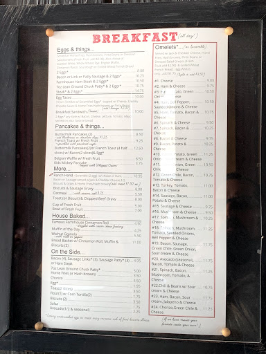Very good, basic American breakfast. Nothing fancy here, but thats not their target; hence, the name "Farmhouse". They get it right with a rustic simple decor. Staff immediately greeted us and sat us. Everyone at our table ordered egg dishes. The food was fresh, hot, and flavorful. The side salsa looked and tasted homemade (yeah!). Freshly squeezed OJ always gets a thumbs up. The café-au-lait caught my eye, but only after I had ordered regular coffee (which was well balanced, medium strength, and not bitter). Service was pleasant and efficient, given that every table was full in this tiny eatery. After we arrived, there were intermittent short lines outside (always a good sign, especially on a weekday).