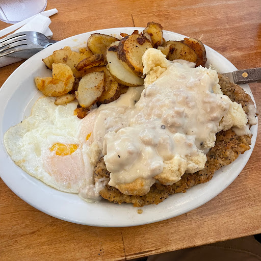 After living in Gilbert for 12 years, we thought it was about time to patronize this eatery. Country charming, clean and quaint. And by quaint, I mean pretty small... but they make good use of the limited space. I liked the 4 seater counter. One note for newcomers. Dont sit at the booth closest to the front door. We visited on a cold January morning, and the arctic chill that blew in every time someone opened that door, made my nipples stand at attention. Cooled my food off pretty quickly too. I can only imaging how hot it gets during the dog days of summer. The food was good, but I wouldnt purposefully wait longer than a half an hour, due to the liberal portion sizes.