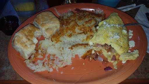 We ordered food the service was so so,most of the staff seemed happy,our waitress on the other hand was angry we guess,we ordered the SMOKEY BRISKET BENEDICT it was bad both times coming out, the poached eggs were not cooked all the way,also the brisket was warm like room temperature, the hash browns had inconsistencies in temperature also second The GREEK OMELETTE was ordered it came out fresh and hot the blue cheese is so so..the biscuits were not hot just so so we ordered more biscuits they came out fresh. Issues when you order food at the same time it should come out hot at the same time ..I feel if your gonna recommend a specialty dish and not know how its made why have it on the menu...