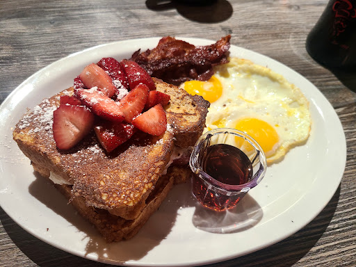 This place has a great appeal to it, the outside is clean, and the interior is fantastic as well. But when it comes down to the fact, I waited 4 minutes to even be acknowledged, then when I would say thank you the waitress would say "No problem" in a snarky, under the breath response. Now, why we are really here, the food was okay. And I mean that in every sense of the word. The french toast was delcious, the sweet potato pancake was not. It was under seasoned and bitter, truly not tasty. Their jam is delicious! Something I would come back for, toast and jam. Lastly the gigantic open wall to see into the kitchen where the waiters touch your food ,and what not, is something I didnt want to see. Overal, they get 2 stars. Work on your staffs attitudes, and make the food more flavorful if we are going out to breakfast we want to be awakened by flavor!