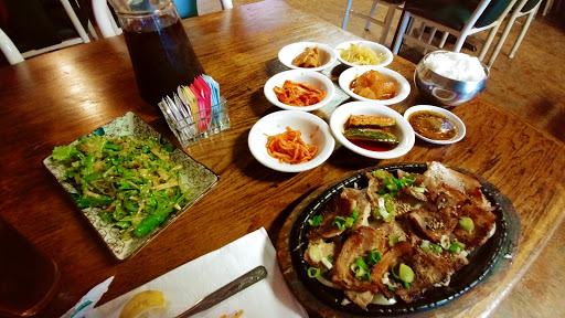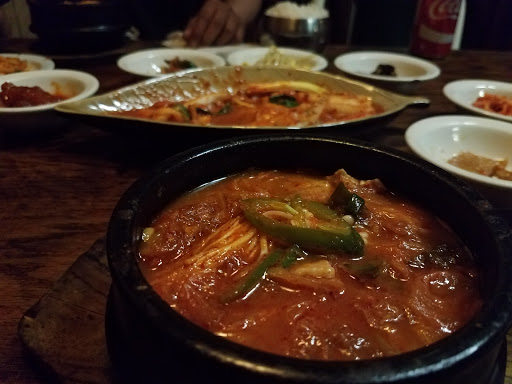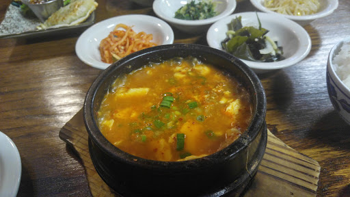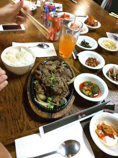Cozy little restaurant that offers amazing food and great service. Its a traditional Korean restaurant that serves delicious platters at reasonable prices and also refills the side dishes at no cost. Drinks are by the can. Soup isnt really "soup", more like meat in top of a rice bowl. Be cautious, their spicy IS spicy