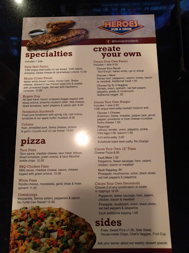 Holy cow, this food is awesome! I would recommend Heroes Pub to anyone! Excellent service and food!
