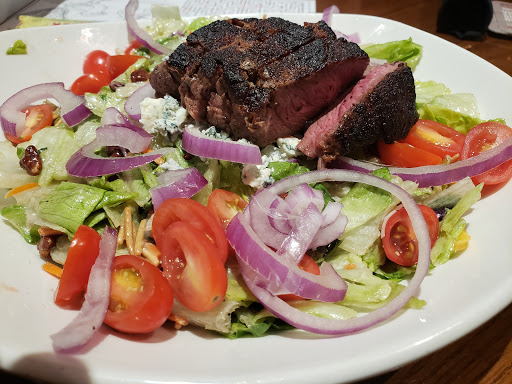Not sure what it is, but Outback is able to get the general atmosphere of their restaurants right, but the food? I mean, it seems to be lacking in flavor, finesse, and overall quality. I have been to this Outback location many times. The staff is generally friendly, anyone that wants a friendly bar experience will find it, but if you want a good food experience, I gotta say, go somewhere else. The steaks are not the best cuts and the chefs seem to be a bit slopping in how they grill or pan sear them. I know this is a steak house, but if you really like steak, Im sure you would agree with me, this is not where you go to get a good cut, just saying. The fries are often soggy when they are served as a side. The side salads? Come one, they are store bought from Walmart, or at least thats what it tastes like. The burgers? Id rather get one from Sonic, sadly. They are thick and all, but the flavor, like I said, I mean its DRY!!! Im an American, burgers and fries are therefore my staple...I dont mess around when it comes to demanding a good burger. Furthermore, the bloomin onion, oh, bless it, comes out tasting like the badder was never fully absorbed. You can TASTE the dry badder on your tongue as you eat the blasted bloomin thing. That is so frustrating! The bread is good, though and the staff is quite friendly. I have been here several times and only once really had a server that I didnt really like. This place is a staple, mainly because of nostalgia and family history going to Outback, but it isnt my favorite place in the world to eat, Ill tell you that. Go across the street to Carrabbas (owned by the same company, by the way). Now THAT place, I can say, has some delicious stuff...fresh, too.