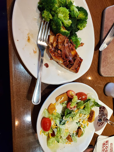 The only good thing was the bloomin onion. I ordered parmesan chicken fettuccine with "all you can eat" shrimp. The noodles came cold AND with no silverware to eat it with. And the server couldnt be bothered to get me more than 1 small serving of shrimp, the whole dinner. About twenty minutes after I asked I finally got silverware but by then the chicken was totally outside temp. Never got more shrimp even though I asked. I used to eat here regularly, but probably wont now for at least a few years..