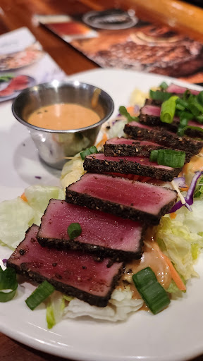 Is 0 Stars an option? Oh Outback, what happened to you? Ahi appetizer was premade and rubbery. We sent it back and our server made no comment about our concerns. Dinner came and he asked how our meal was before we tried it. Medium steak was well done and horrible. Garlic butter was left off but brought in a dish cold when asked and side dishes were missing. No offer made to fix anything. Nearly a hundred dollars for a meal that will result in me NEVER returning. Very sad.