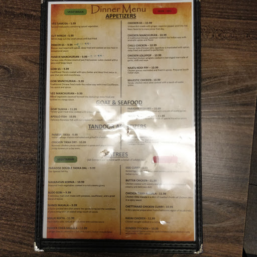 I have been here twice and there will never be a third time. The biryani was okay but the gravy that comes with biryani taste stale as if its leftover from the day before, biryani flavor is not unique as they say, and I felt like just eating the plain basmati rice. Second time I have ordered mirapakaya kodi , one chicken dum and goat biryani , the mirapakaya kodi was unpalatable, we just threw it in garbage .chicken dum was just okay and goat biryani wasnt well cooked . I dont know where they have learned their recipes but its not paradise, I have been in other states for sure.