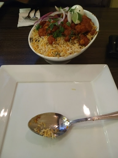 out of my life time ive had the worst biryani in my life ever. therice was like plastic rice half boiled and very hard to chew, i still find it hard why people give so much ofpositive reviews about this place about service and i have visited this place thrice allthe three times was a disaster. 1. Special chicken biryani was the worst suggestion made by the lady who received us as the special chicken doesnt seem to be chicken. 2. Goat Biryani- meat was burnt and the rice was not even cooked and the spices was not even tasted like biryani and the service was another pathetic thing they serve food first and then water in indian restraunt i have never seen this. the server was very RUDE saying its almost closing time, he was rushing home at 8.45 PM I remember that server had a Bald Head. so complete disaster and made us leave the food after having two spoons and i felt this food was stored in a freezer then when we ordered they just heat it up and served. IF THERE IS A WAY I CAN GIVE NO STAR I WOULD PREFER GIVING THEM ZERO OUT OF 1000.