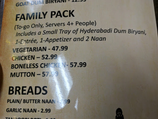I have been waiting to try out their food for so long and finally went for dinner last night. Wow!! The restaurant was full and we had to wait to be seated!! I have never ever seen any other Indian restaurant where you have to wait because its full!! I was already impressed. Apart from this they had non stop carry out orders.. the staff was very nice and courteous..Food is delicious, Best Chicken Biryani I ever eat in US. The aroma of Biryani is in the air!!! Love it pros Excellent Service Very good taste very clean and nice