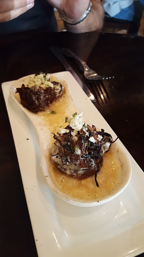 We happened to find this place entirely by chance as we drove to the back side of the building complex to find parking, the word "mushroom" on the sign caught my eye and we decided it was a must try. The ambiance here is great, indoors is classy but laid back with rat pack/jazz era favorites playing over the speakers and the patio (where we sat) was great as well furnished with stone top tables and plush cushioned seats much nicer than the wrought iron tables and chairs on most restaurant patios. The restaurant had only opened the night before so they were serving a limited food menu (limited to only mushrooms, which didnt bother me at all) but with a full bar menu. The draught beers were great, we tried the vanilla porter and the cheekily named Arrogant Bastard ale, both very flavorful but neither was overpowering. Also good was the specialty martini, but for the price the ale was a hands down winner. The selection of wines and liquors was not overly huge, but consisted of mostly higher end stuff at a fair price. It took a bit longer than expected for our food to be served due to a glitch in the kitchen (only the second night open, after all), which was understandable. The food was worth the wait as it was just delicious, the antipasto button mushrooms were the star but the portobello cap with crab and alfredo sauce was wonderful. We were pleasantly surprised when we were told that to apologize for the wait, our meal would be on the house. And even more surprised when the chef himself came out to apologize directly and offer another entre at no cost. In addition, the entire staff was friendly and attentive and made you feel welcome. Our server was particularly nice and made our experience more enjoyable by making us feel as though we had our own personal waiter. This is one of the best finds I have come across, chill enough for a casual meal and nice enough for a night out if you are in the mood. Definitely check it out.