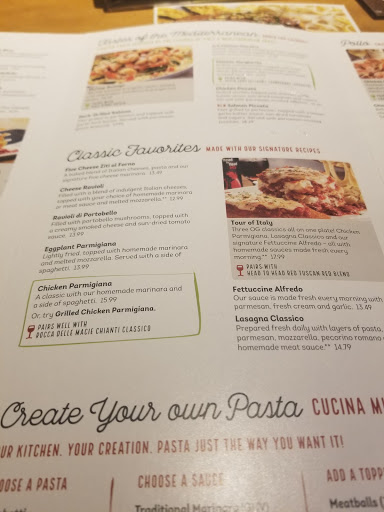 So we were seated at 7 pm. By 845 we had just received our food. The couple sitting behind us was sat 40 minutes after us. They received their food the same time we did. Our server would vanish. The best part is the Manager Kris kept walking by, she coveinately avoided our table, when she was in the area or near the table. When our food was brought out my dish had apparently been sitting for awhile, noodles were dried out, Alfredo was cold, chicken was cold. The manager was informed, she took the dish and returned with a hot dish within 3 minutes. While I was walking out, I stopped the manager, told her we had been there for over 2 hours. She said "I know". Really WOW! Overall experience... crappy! Thumbs down.