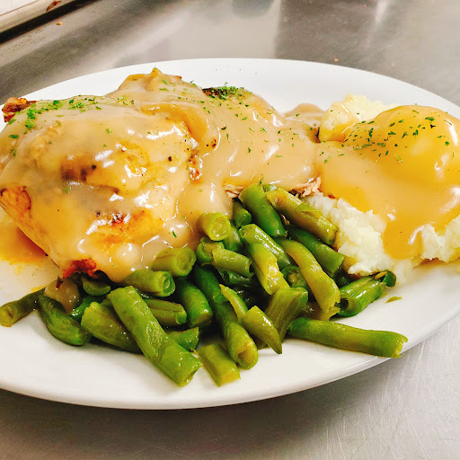 Location: Right off Interstate 19 and Esperanza in Green Valley Atmosphere: Very dated but clean. Definitely not catered to the under 50 crowd but that is to be understood as this was in Green Valley. Food: You can tell that this food is geared to what I call the "bland" eater. I ended up ordering a chicken dinner with two sides (baked potato and green beans). Unfortunately the chicken you can tell was dry, the bake potato was okay and the green beans had absolutely no flavor and were very "can" like. Again, I understand that this was in Green Valley, AZ. We did order other dishes like chicken tenders, spaghetti for the kids, etc. All seemed very "Sysco" like, meaning "straight out of can". You can definitely tell chicken tenders and the spaghetti sauce was of that nature. Recommend: Unfortunately, no. For dinner, I would find another restaurant unless youre okay with no flavor in your food...but bless their heart they were trying.