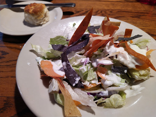 I was excited to try a new steak house. I was traveling through town and it was late at night. This was one of the few restaurants that were opened late. The reviews werent great, but our choices were limited. Upon first walking in the decor was interesting and my initial thoughts were maybe the reviews for this one wrong. The reviews were correct. This restaurant was not good. First there was no one to seat us and we had track someone down. The restaurant was dirty. The walls and surface looked like they had not been cleaned in a long time. The service was okay, but the food was not. The salad was okay. The biscuits were terrible hard pucks of nastiness. The steak was average at best. The onions on the stake were pretty much raw. The baked potatoes was not good and there was no salt in the restaurant. Skip this restaurant and try something else.