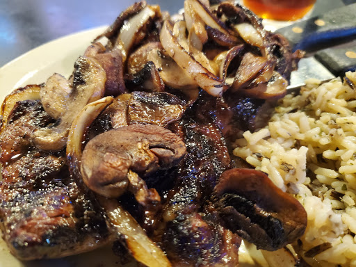 The ribeye was TERRIBLE! They put some sort of brown sugar/cinnamon glaze over it, then piled onions (which were supposed to be sauteed but were crunchy) and mushrooms over it. The menu calls this glaze a beer based mixture, so I assumed it was a marinade...not the case. I ordered the steamed veggies as a side. They did not strain them, so everything on the plate was resting in a pool of veggie juice. Lastly, the waitress never came back to our table after we recieved our food. She never asked if the steak was cooked as ordered (which it wasnt) or even asked to refil our drinks. When she delivered our ticket, we asked to speak to management. We were informed that management wouldnt be back until the following day and to just write down our complaint on the back of the ticket and she would "make sure they got it". I am working in the Kingman area for the next 3 months. When I told this experience to my co-workers native to the area, they were not surprised and stated this restaurant is known for such. The only thing I can say good about it is the decor is appealing and there is a sizeable bar...if you just want to stop in for a drink, perhaps this is the place to go. If you are craving a good steak, keep driving. My co-workers say there are some excellent steak houses in Laughlin.