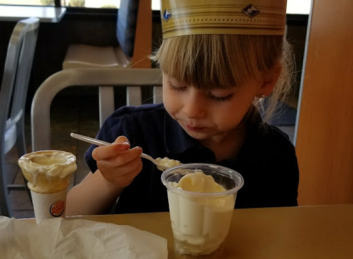 Food great, but the kids meal has no toys for little one. Prefer McDonalds soo she can play and have a toy.. She looks more happy there