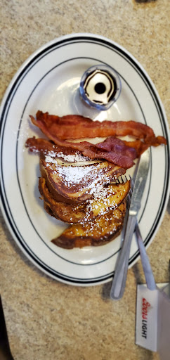 I would have given 4 stars because the French Toast wasnt too bad (though my husbands is far better). I requested to return my ground sirloin because it was tasteless, fell apart and overall looked like road kill, I wanted to get it exchanged with the French Toast. They said it was an expensive dish and that they couldnt exchange or refund. First restaurant to ever do that to me. Must not be doing to well if youre going to charge your customers a dish they only took one bite out of. Ridiculous. Oh and within the first 2 minutes of my husband and I arriving they said "We hope you come back" then the woman (owner) scoffed. This is why we wont be coming back. EVER! I will drive in town and go to Cracker Barrel and get their breakfast. They, make an amazing breakfast if youre looking for that mom and pop feel.