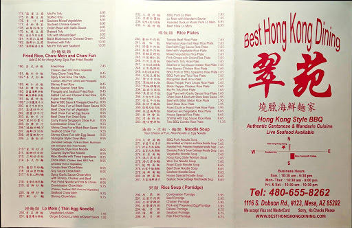 We tried "Best Hong Kong Dining" for lunch and we had some mixed experiences with the food. First, this place does not serve any Hong Kong style tea or lemon tea, so Im not really sure why it is called what it is. And second the food quality varies greatly depending on what you ordered. I ordered a wonton noodle in soup while my wife ordered a sour beef in noodle soup. The noodles itself was saggy - overcooked. And the wonton were really small and barely contained any trace of shrimp; so I guess it was more of a pork wonton than a real shrimp wonton. The restaurant also did not make its own chili oil. It used generic brands. In my opinion, there are better suited "Hong Kong" style dining in the area than restaurants that explicitly called themselves that.