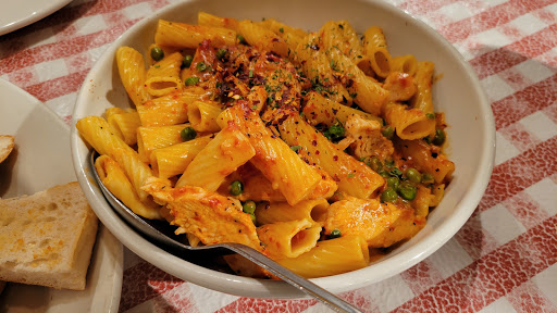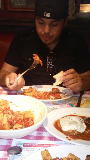 ugh, would never go again. I went for a birthday party, there were like 12 of us. I dont like the fact that they "walk" you through the kitchen, nor would i want to SIT in the kitchen. The layout and look of the restaurant was horrible, it made me feel claustrophobic, and i NEVER feel that way. Gordan Ramsey would have a heart attack if he went in that place from the decorations alone. The service was awful, our waitress never paid attention, not personality, very cold, never smiled. I work at a restaurant, and even if i hated my customers, i still joke with them, and i still give them great customer service. She didnt understand how we were ordering, i had to tell her 5 times. We wanted to get two large entrees, the chicken Marsala, and the fettuccine, with a salad, and garlic bread. It took her forever to understand. The fettuccine was not good, it was bland, and did taste like a mass production entree. The chicken Marsala....where was the chicken?? At least the salad and garlic bread were good. Some girls at our table also ordered the tierra misu, and the waiter warned them it was pretty strong....she did not warn enough. They should have carded us for that thing, all i could taste was the rum, it was awful. The noise...terribly loud...not just cause of our large table, it was just LOUD, we had to raise our voices because it was so loud. Now, 8 of us split the two entrees and salad, so we all ended up paying about 15 bucks each, so price wise, for a large group, it was ideal. But i would never go there with just my husband. Not even 4 people. I am not into large groups (more than 6) But like i said, for large families, big groups of friends and what not, its great....if you dont care much about taste and are on a budget. The only reason why i had fun was because i was with friends, anyway, i wont be going back, anytime soon at least, i would go again on some one else terms, but it would not be my first choice.