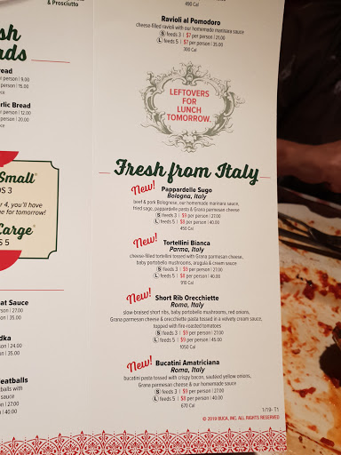 I prearranged the banquet with sales manager and dining room staff more than a week ahead. Banquet held on 12/28/15 with 23 guests. Included a 2 hour bar package. The service was so abysmal that I wonder if they even remembered they had a party scheduled. Its almost as if we surprised them by walking in off the street with 23 hungry people. HIGHLIGHTS - Incorrect seating arrangement - Servers not dedicated to party - Extremely slow course service - Even slower drink service - Undersized entree portion - Limited ("we ran out") draught beer Our table and drink service was so poor that multiple guests noticed and commented about it throughout the evening. Service was likely slow because although I had previously discussed and agreed to 2-3 dedicated servers for our party, they were actually attending other (non-party) patrons. DETAILS: The seating arrangement and room selection were not as agreed to. We had previously discussed and selected the Cardinal room. We also discussed and decided that seating would be at tables to avoid having guests “trapped” in booths. Upon arrival we were directed to the Wine room, where seating was arranged with two tables at the end of two booths. The manager on duty was apologetic, but implied that our preference for room and seating was not communicated with her. The undesirable booth seating required at least 3 guests to move every time someone in a booth had to get up (it was a 2 hour affair). 8-9 of our guests were seated in booths. Service was slow and inattentive. Initial drink orders were slow to be taken and even slower being served One of our guests did not have a place setting when food was served. The same guest did not have a drink order taken until I brought it to a server’s attention. Since servers were rarely in the room with us, I left my place at least 6 times to stop one of them in the aisle to request a place setting and numerous drink requests. The pace of the dinner was exceptionally slow: everyone was literally sitting around “waiting” between salads and pasta, and again between entrée and dessert. Drink service was particularly disappointing. The two servers who were assigned to our party were obviously busy with many other dining room guests. As a result, it was extremely difficult to get their attention to make timely drink requests When drink orders were eventually made, it took an exceptionally long time for the orders to be served. Our guests noticed this slow service and often commented on it throughout the evening. It was this slow service that eventually prompted me to track down the on duty manager and ask for more timely service - - but I think the situation was beyond control because service only improved for a brief spurt. Entrée portions were meager and undersized. I was dumbfounded when Chicken Parmagiana was presented as half-breast portions! I am not joking: each boneless breast was literally cut in half - - 24 halves I believe. These were portions from the kid’s menu! It was cheap, tacky, and runs a close second to drink service insofar as disappointment. [NOTE - I followed up with the sales manager about the Chicken Parmagiana portion size, and they responded saying this was a "standard portion" for a banquet (although the menu description for this item describes it as a large chicken breast)]. Bar package included 5 draught beers (previously discussed with sales manager) - - one of which was "unavailable" during our party because they had run out (Blue Moon). Since table and bar service was so slow, I regret having ordering the 2 hour bar package. I explicitly discussed and underscored the service level expected with the sales manager multiple times prior to our event. To say that service "did not meet my expectations" (or my guests) is a gross understatement. I would neither choose Buca as a venue for another party or recommend it for a banquet to others. PS - The food was great. Except of course for that entree portion.