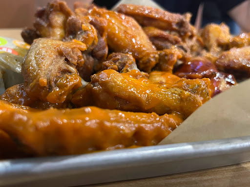 Im not a sports fan, so I didnt discount stars for the indoor volume as it is a sports bar but I do love a good chicken wing. The food is decent if priced a little higher than Id like. The staff is attentive, even if borderline pushy (with thier rewards program) and all seem to be in high school but I was never left wanting for anything at my table. Being said, as I do not enjoy sports, it was an unfortunate mistake to arrive during a football game. If thats your kink, youll have a good time worshipping at the altar of the NFL here. Tvs wrap around the dining room. I subtracted stars for the lack of concern from the servers nearby. We were seated by the host stand and they openly bickered about tables and slammed things on the railing right by our heads and against the wall between our table and them.