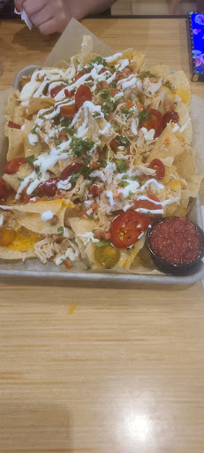 I walked in to the female manager repremanding the clealy new host in front of customers. ALL THE SERVERS SEEM MISERABLE HERE. Nacho chips are stale and gross Onvrn is broken and everything I want needs the oven :( Buffalo wrap had good flavor but the chicken was so over fried and hard I hurt my tooth! French fries were good Black cherry limeade was good BUT 3.19 no refill Oh hahaha and they switch the TV to Jeopardy in the middle of a game WTF?
