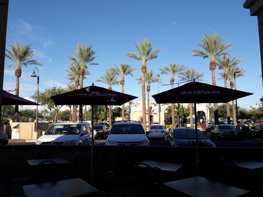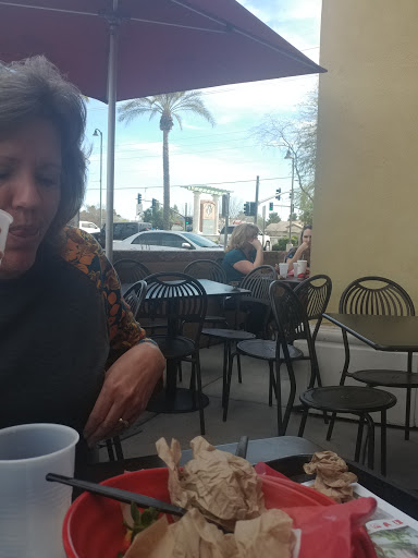 Okay, this was my first time to Cafe Zupas since I moved to AZ last year. First, the servers did not understand the order. I ordered a salad, my husband ordered a sandwich. This was not a combination soup/sandwich order. I wanted a full salad for myself, so this was 2 separate orders. The salad was very good and he said the turkey, bacon, avocado grilled sandwich was fine. The chocolate covered strawberries were very good. Drinks were satisfactory. Here is the problem. It was 4:30, close to dinner time. The table tops were dirty and there was food on the chairs. The area were you put your tray and dirty dishes was stacked 5 and 6 trays high and the garbage container was full. There were dirty cups, dishes everywhere and this is right where you serve yourself to drinks and condiments. Underneath the stacked dirty trays where the bins with dirty dishes that looked like they were left over from the lunch crowd. Was the dishwasher broken? Or was someone not doing their job to keep that area clean and neat, too lazy to take the dirty trays and dishes back to the kitchen? On top of this, there were dirty dishes and trays on the outdoor tables and food on the sidewalk area. There were all kinds of birds on the tables trying to get to the food left there. Dont get me wrong, I like birds, but they are dirty creatures and dont belong in the outdoor dining area of a restaurant. They would not be there if this area was cleaned up. My sole reason for trying this cafe is because I am hostessing a luncheon for about 12 people in a couple of weeks. I am sorry to say I wont be having my luncheon at Cafe Zupas. It would serve you well to keep this place a little cleaner and neater, because first impressions are lasting impressions.
