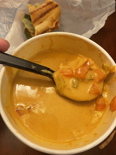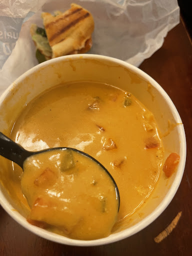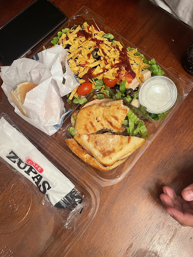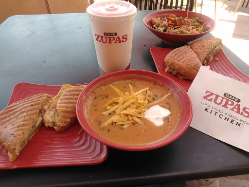 Oh my goodness! Tried this place on a whim and Im so glad I did! Everything my friends and family have tried there is delicious to the max! My favourite is their Tomato Basil soup and Pork Carnita Panini. Nothing better! Although their Chicken Enchilada soup is excellent too. (And my Mom and sister are addicted to their Wisconsin Mushroom soup and Turkey Avocado Panini.) Been there multiple times since discovering it and have never been disappointed. Even the drinks are gourmet and you can make them special to your liking by mixing in an Italian soda syrup or two...or more. Whatever suits your taste. I just wish they sold bigger to-go containers of their soups and the price could be a bit lower, or they could put out a coupon or rewards program to earn free food. But as far as taste goes, you cant do better than Zupas!